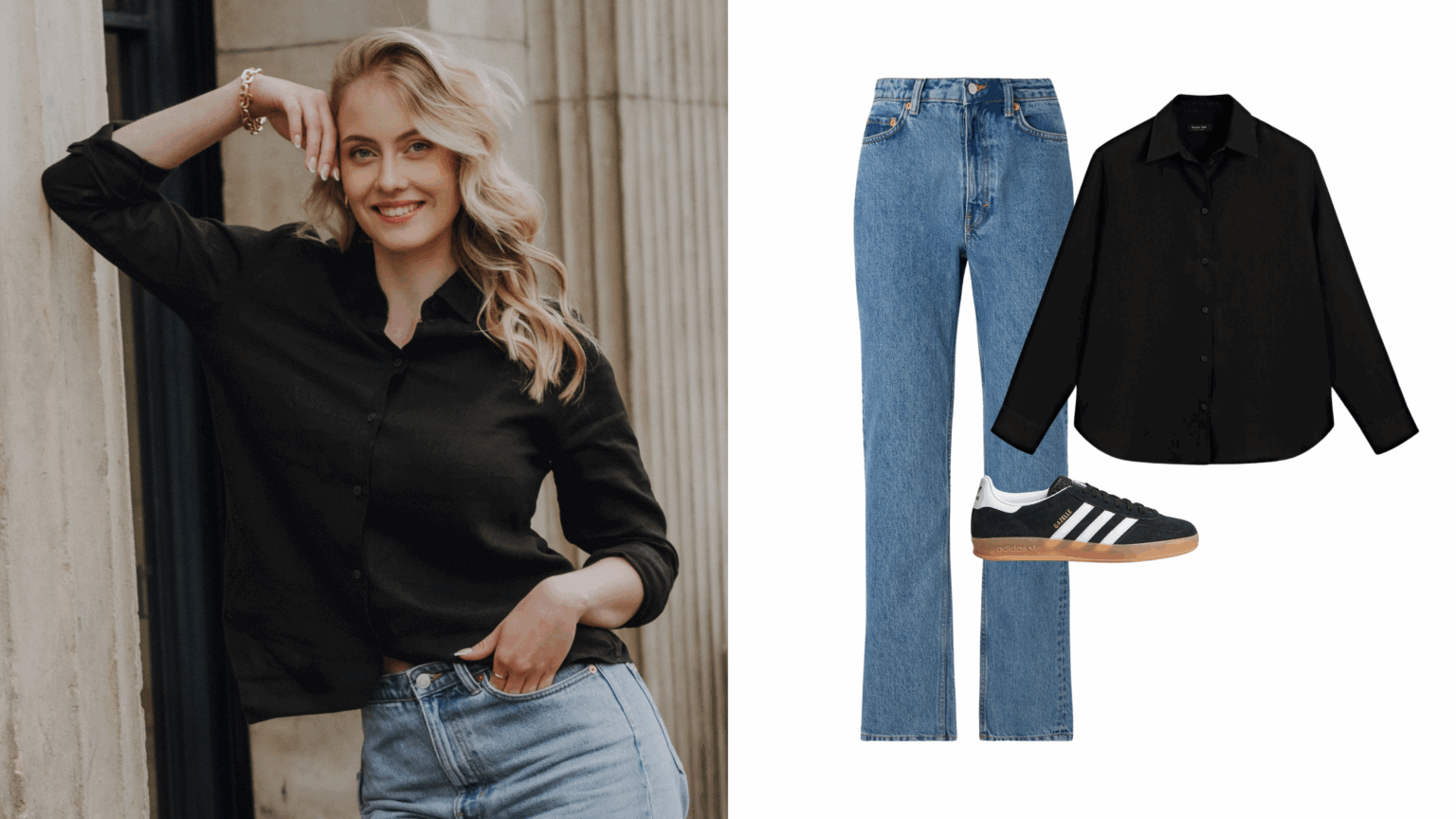 Ob Homeoffice oder Büroalltag – dieser Look bringt Komfort und Stil zusammen. Das schwarze Leinenhemd sieht nicht nur gut aus, es fühlt sich auch bei 30 Grad noch angenehm an. In Kombination mit hellen Jeans und sportlichen Sneakern entsteht ein moderner Mix aus Office und Streetstyle.
