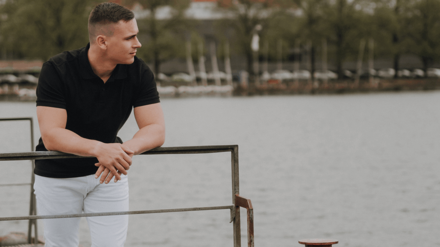 Wenn es morgens schnell gehen muss, der Look aber trotzdem sitzen soll: Schwarzes Polohemd und weiße Jeans sind das unschlagbare Duo. Der dunkle Ton bringt Ruhe rein, die helle Jeans wirkt sommerlich – dazu Sneaker von Adidas, fertig ist ein Outfit, das sportlich wirkt und trotzdem gepflegt aussieht.