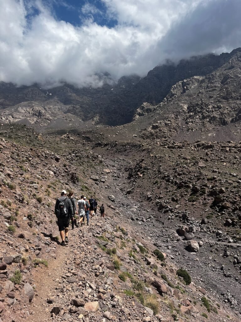 Die eigentliche Wanderung im Atlasgebirge beginnt nach einer kurzen Weiterfahrt. Die Route führt durch atemberaubende Landschaften: grüne Täler, rauschende Wasserfälle und traditionelle Berberdörfer. Die Wanderung ist mittelschwer, aber auch für Anfänger:innen geeignet, wenn du gut in Form bist. Ein erfahrener, lokaler Guide begleitet die Gruppe, erklärt Flora, Fauna und Kultur der Region und sorgt für ein sicheres und angenehmes Erlebnis. Zudem achtet der Guide darauf, dass alle gut mitkommen, passt das Tempo dementsprechend an und gibt bei Bedarf auch Hilfestellung.